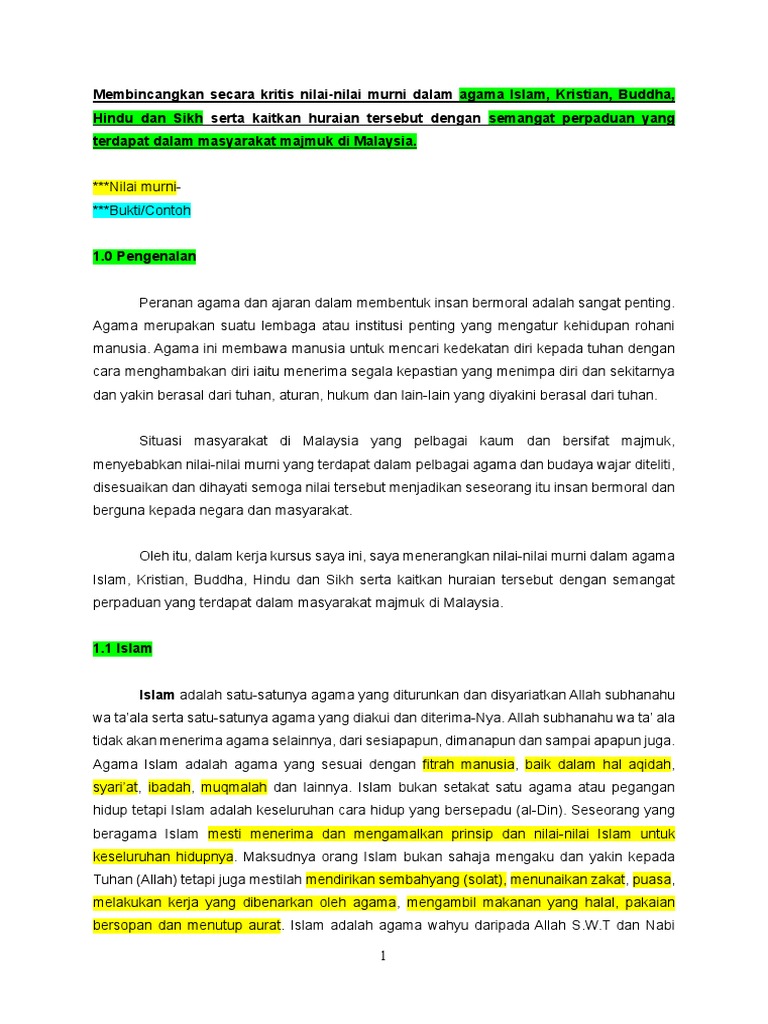 Elmk3033 Nilai Nilai Murni Daripada Perspektif Pelbagai Agama Dan Mas